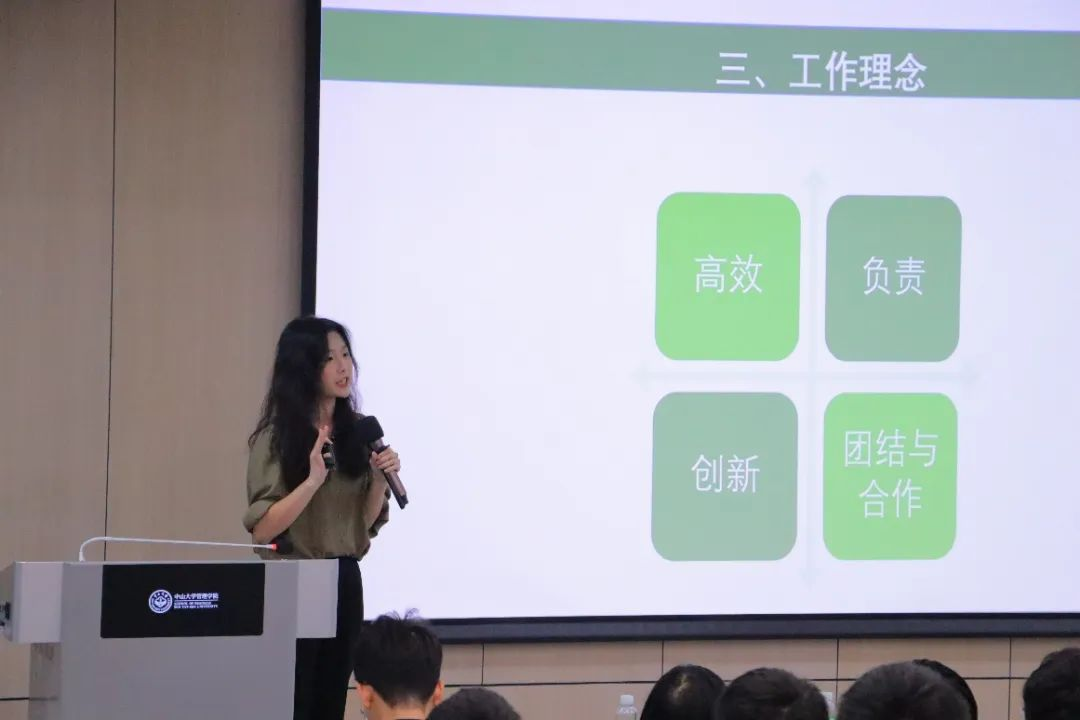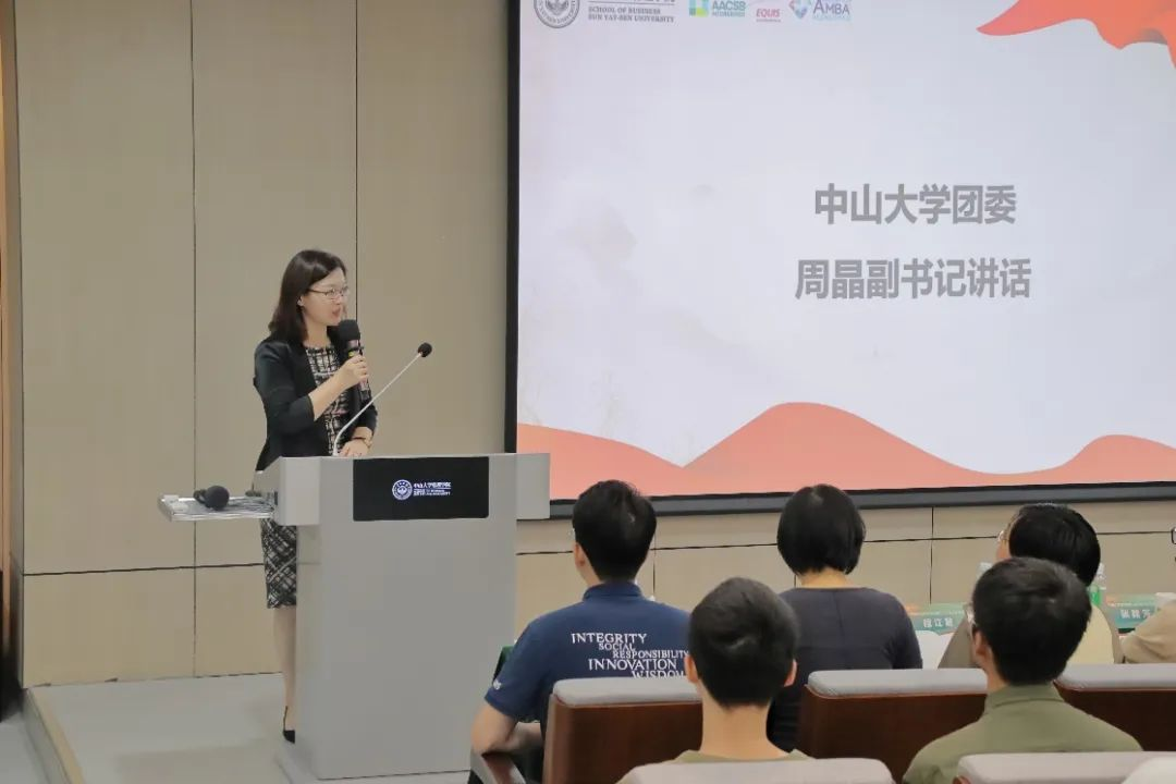 中山大学团委副书记周晶,管理学院党委书记钟一彪、副书记张毅芳,管理学院团委副书记牟欣、程江慧,辅导员林耀伟、刘潇、周琴,与137名学生代表参加了会议。