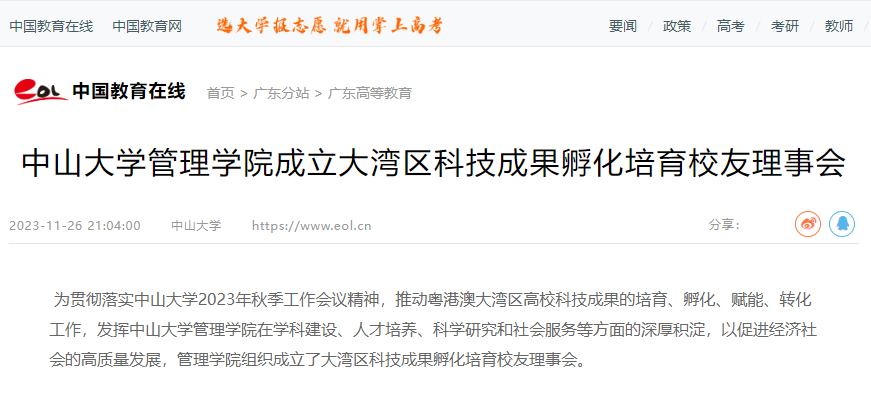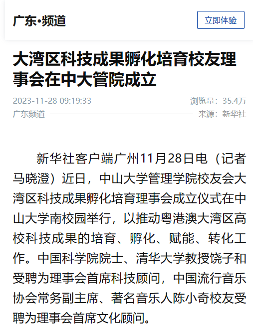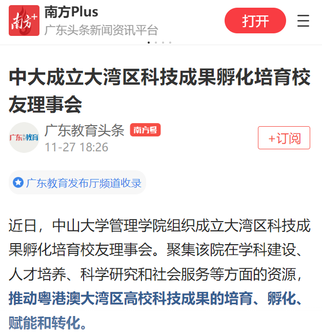 媒体聚焦丨新华社等媒体报道管理学院成立大湾区科技成果孵化培育校友理事会