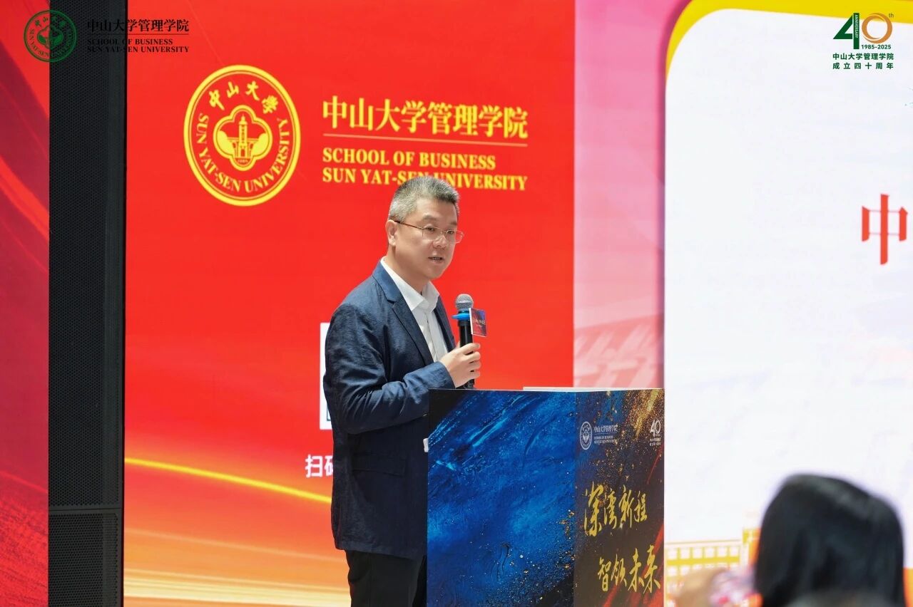中山大学副校长邰忠智代表学校致欢迎辞,并表示在“双庆”的历史性交汇点,将A+学科落地深圳,不仅是致敬特区,更是服务国家战略、赋能大湾区高质量发展的具体行动。邰校长也充分肯定了管理学院在商科教育领域的卓越贡献。