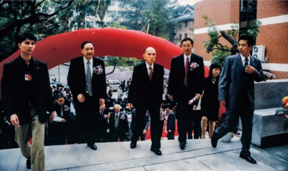2002年,霍英东先生、霍震寰先生共同出席管理学院MBA大楼(善思堂)落成典礼。