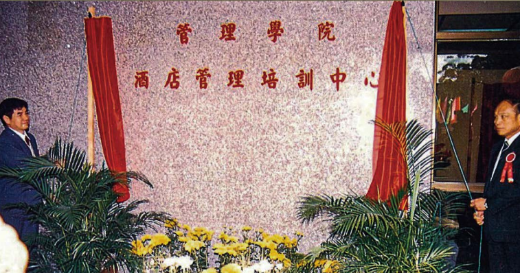1989年,霍英东先生与中山大学时任校长李岳生共同为酒店管理培训中心揭幕,完善实践教学平台。
