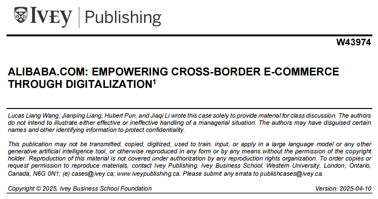 4月10日收录发行的案例《Alibaba.com: Empowering Cross-Border E-Commerce Through Digitalization》(案例编号:W43974),聚焦阿里巴巴国际站的战略变革之路。2024年5月,阿里巴巴集团控股有限公司旗下的阿里巴巴国际站正面临一场势在必行的战略变革。成立于1999年的阿里巴巴国际站发展迅猛,已成为最大的企业间(B2B)在线交易平台之一,这主要得益于其持续的数字创新,消除了跨境交易中的诸多障碍。然而,在推广阿里巴巴国际站提供的数字解决方案方面,仍存在显著阻力。只有极少数中小企业在其国际贸易实践中使用数字平台。为克服这些障碍,阿里巴巴国际站需要明确:是像过去一样仅依靠数字创新就已足够,还是应当制定一套超越数字解决方案的、更全面的战略?随着新冠肺炎疫情的结束和线下贸易的强劲复苏,这一决策对平台持续增长的重要性日益凸显。