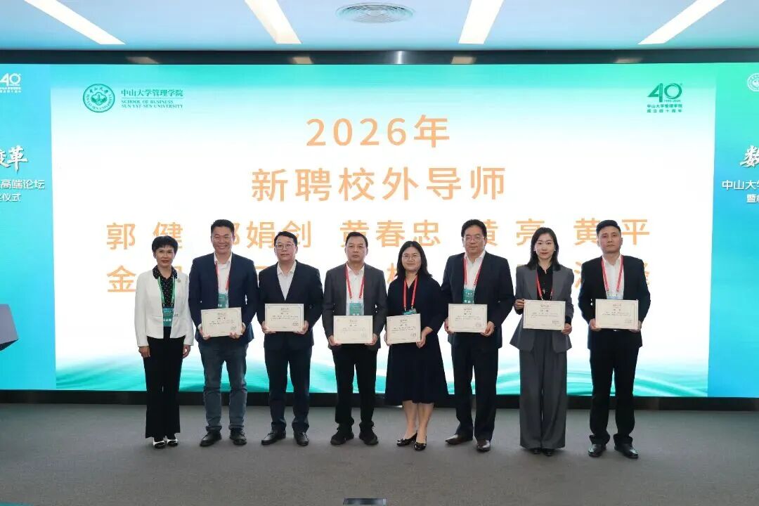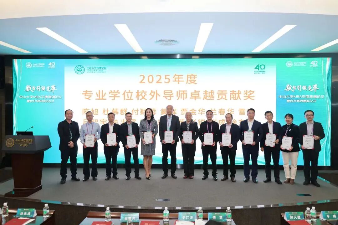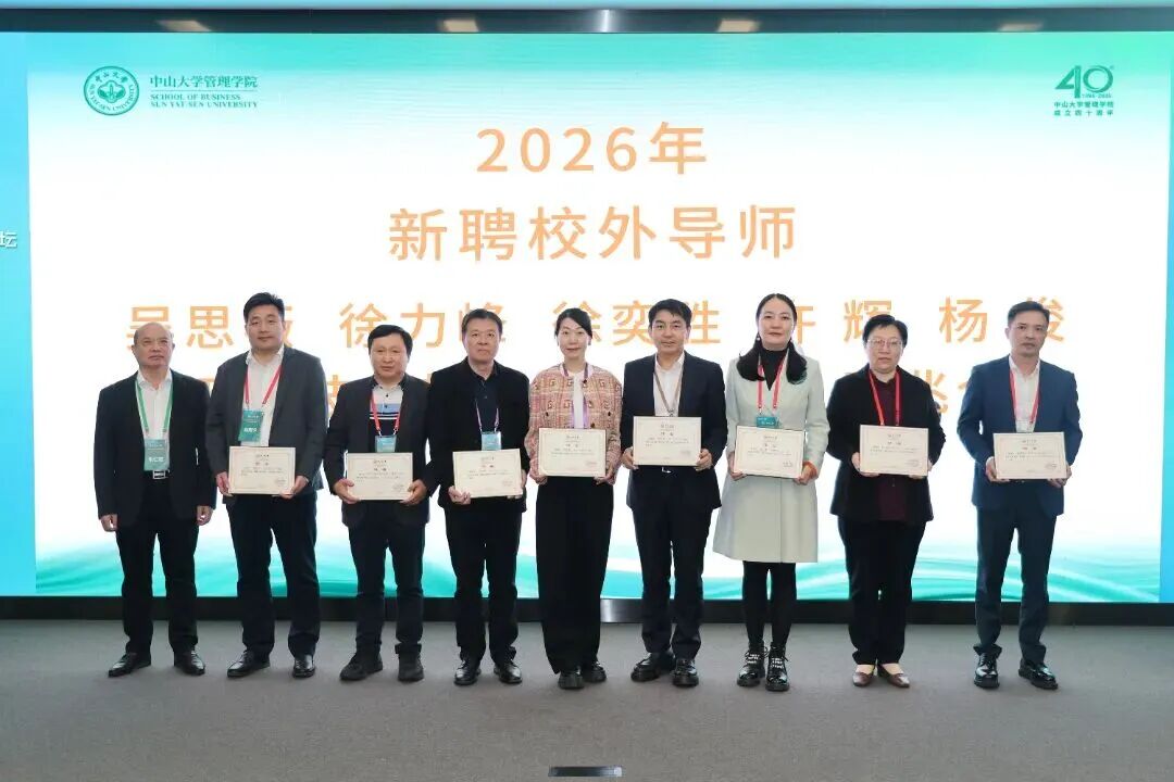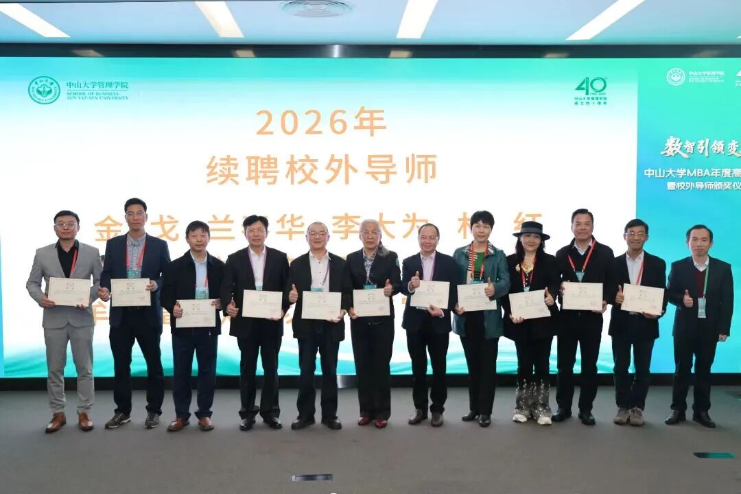 2026年1月17日,“数智引领变革”中山大学MBA年度高端论坛暨校外导师颁奖仪式在中山大学管理学院国际会议厅隆重举行,以多元形式深度探讨数智时代企业转型与人才培养核心命题。
