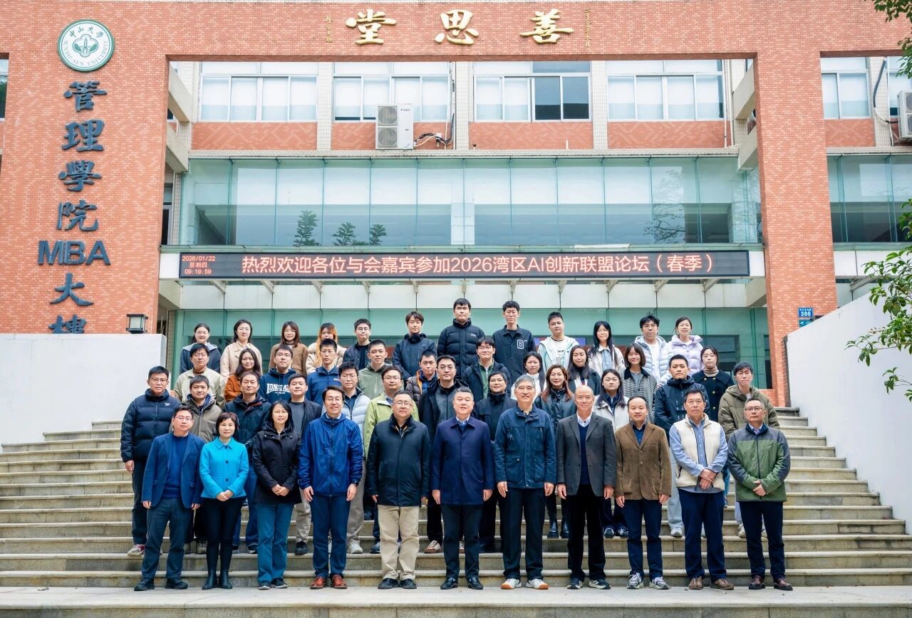 当前,粤港澳大湾区成为当代中国人工智能(AI)创新最活跃的区域之一。为加强湾区高校AI创新理论与实践交流,2026年1月22-23日,由中国信息经济学会作为指导单位,由香港中文大学(深圳)经管学院、香港中文大学商学院、香港大学数字经济与创新研究所、清华大学经济管理深圳研究院、中山大学管理学院、华南理工大学工商管理学院(排名不分先后)联合主办的“2026湾区AI创新联盟论坛(春季)”在中山大学广州校区南校园管理学院善思堂成功举办。
