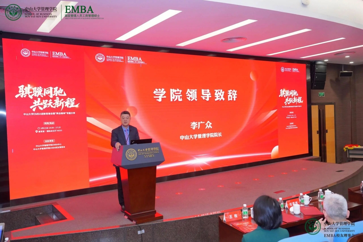 为深入学习贯彻2026年全国两会精神,汇聚高质量发展合力,3月15日,“中山大学EMBA迎新答谢会暨两会精神专题分享”在中山大学管理学院隆重举行。活动特邀专业学者与行业翘楚解读宏观政策与产业趋势,并隆重表彰为上一年度项目发展做出卓越贡献的合作伙伴与个人。管理学院领导、校内外专家学者、EMBA校友及各界伙伴百余人齐聚康乐园,共话新程,共绘蓝图。