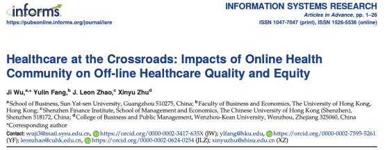 善思“医管新观点”丨吴记(ISR,2025):在线健康社区对线下医疗质量与公平的影响