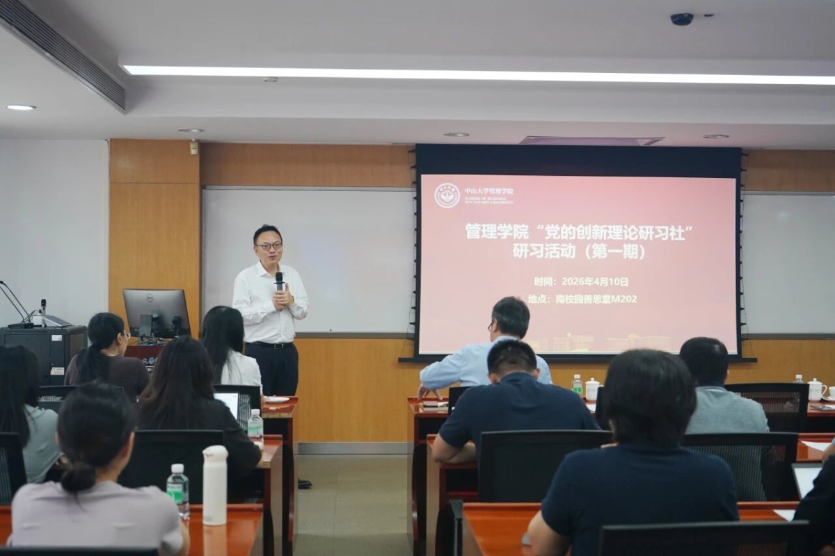 为深入学习贯彻习近平新时代中国特色社会主义思想,持续推进以党的创新理论引领中国管理学自主知识体系的建设与发展,4月10日,中山大学管理学院举办首期“党的创新理论研习社”研习活动。中山大学党委副书记王帆教授以“建构中国自主的管理学自主知识体系:基于党的创新理论与“十五五”前瞻的学科交叉与演进蓝图”为题作首场主题演讲。演讲紧扣党的二十大及二十届历次全会精神,结合“十五五”规划前瞻部署,系统阐释新时代管理学科发展逻辑与实践路径。