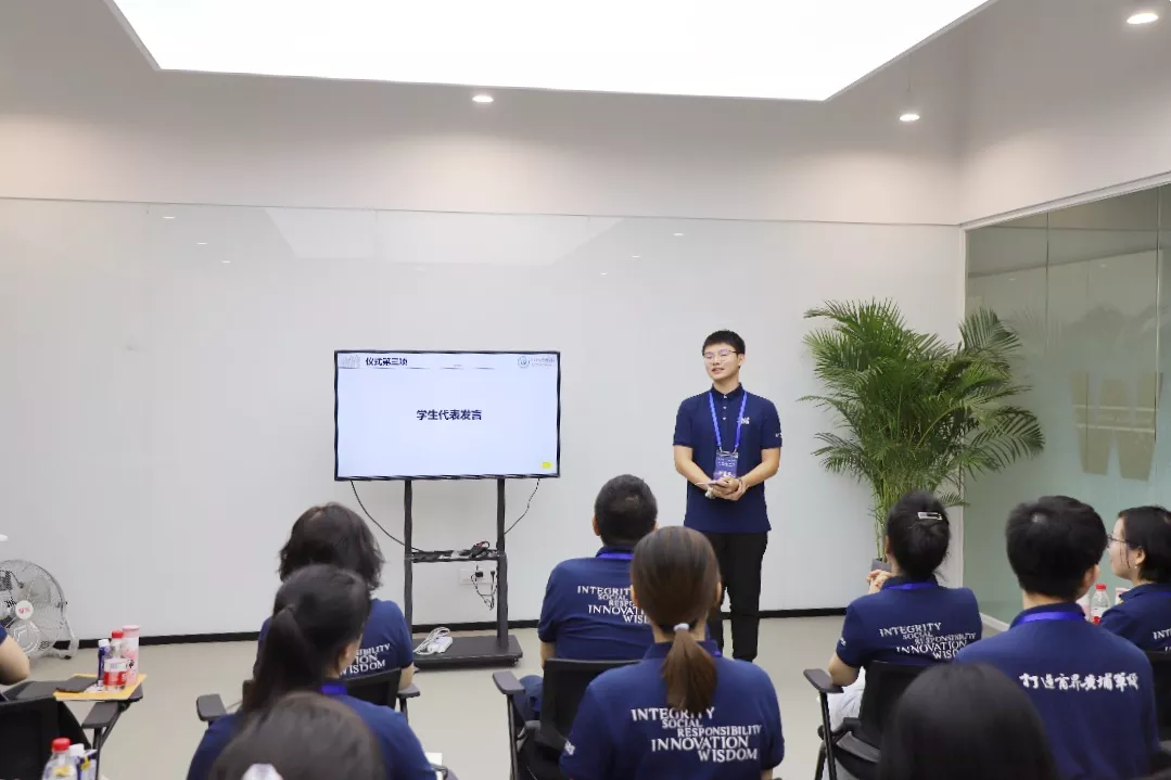 王帆院长在开营讲话中诠释了本次训练营的主题——创业创新。希望同学们通过党史学习与共同富裕示范区城市调研,回首党的初心使命、回顾党的创业征程,加深对于新时代新青年应有的责任与担当的理解,牢记初心使命,勇担时代重任;通过企业调研与专题讲座,增强对创业创新的认识、理解与体悟,激发创新精神,提升实践能力。最后,王帆院长期望同学们在行程中感受城市文化与历史底蕴,陶冶情操并提升人文素养。