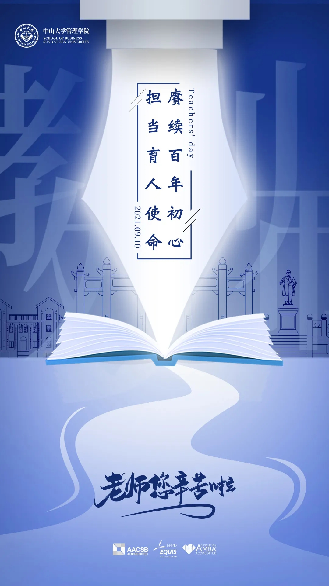 感谢管理学院让我遇到了和蔼可亲的老师,更感谢各位老师为我打开了通向多彩人生的大门。衷心祝愿所有老师工作顺利,笑口常开,教师节快乐!