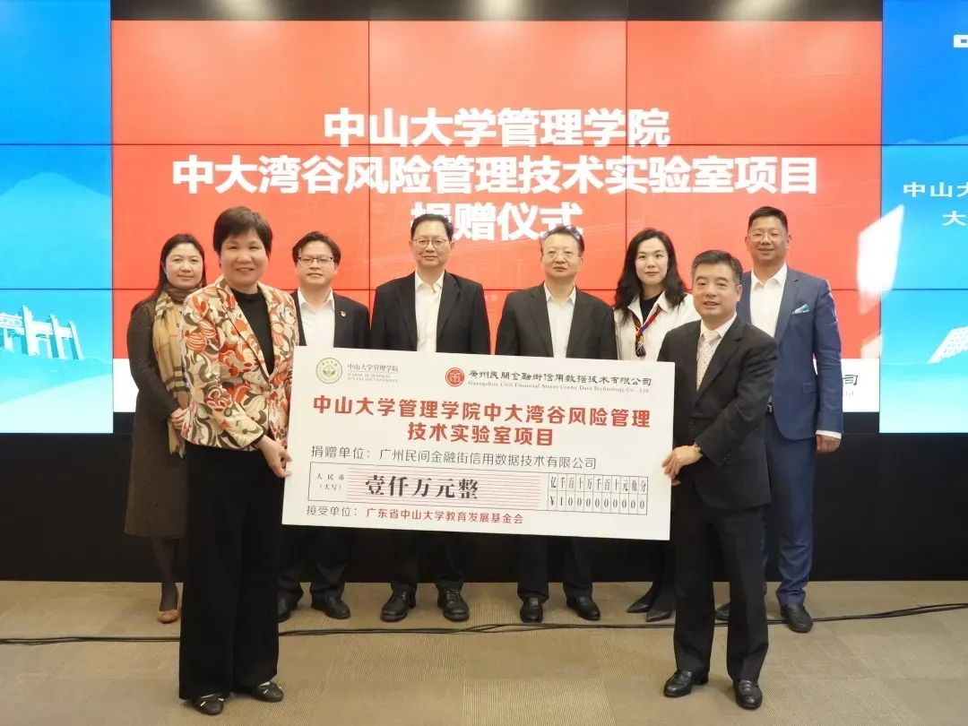 广州民间金融街信用数据技术有限公司捐资1000万元人民币在我院设立“中大湾谷风险管理技术实验室”,是中山大学和广州市进行校地企合作、打造风险管理技术领域的重大研究基础平台。希望通过实验室建设发挥研究优势,切实服务国家重大需求和广东省地方金融发展的迫切现实需要,成为广东省在数字金融领域的龙头企业和广州市建设全国风险管理中心的一张名片。