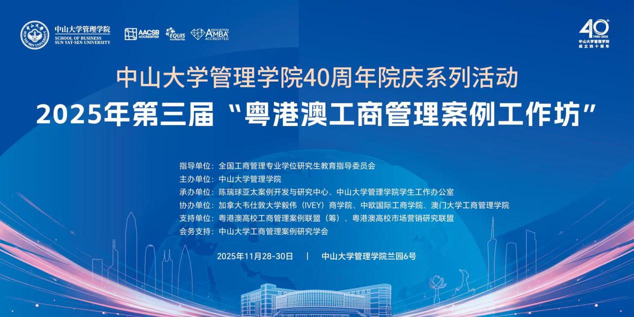The Third Guangdong-Hong Kong-Macao Workshop on Business Administration Cases was successfully held in Guangzhou and Macao, China. Guided by the National MBA Education Steering Committee, the workshop was hosted by the School of Business, Sun Yat-sen University, and co-organized by the Chen Ruiqiu Asia-Pacific Case Development and Research Center and the Office of Student Affairs. The event received collaborative support from the Richard Ivey School of Business, University of Western Ontario (Canada), China Europe International Business School (CEIBS), and the University of Macau - Faculty of Business Administration. It was further endorsed by the Guangdong-Hong Kong-Macao University Business Administration Case Alliance (in preparation) and the Guangdong-Hong Kong-Macao University Marketing Research Alliance, with conference services provided by the Business Administration Case Research Society of Sun Yat-sen University.