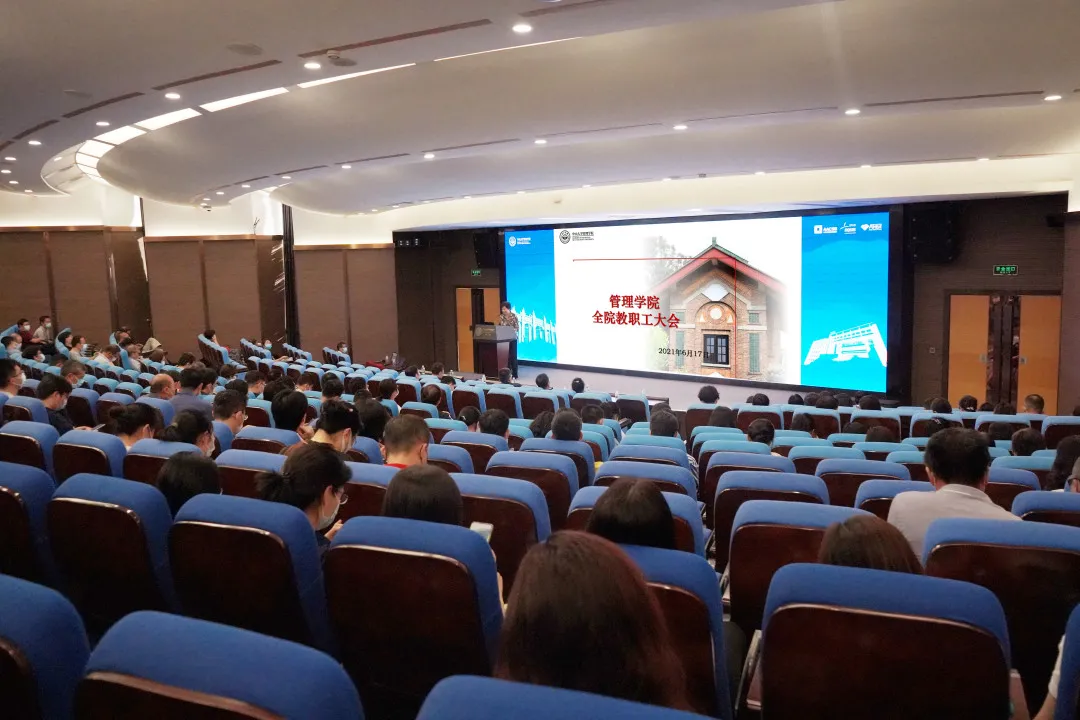 On the afternoon of June 17th, The Faculty and Staff Meeting of the School of Business was held in the Shansi Hall, International Conference Hall.