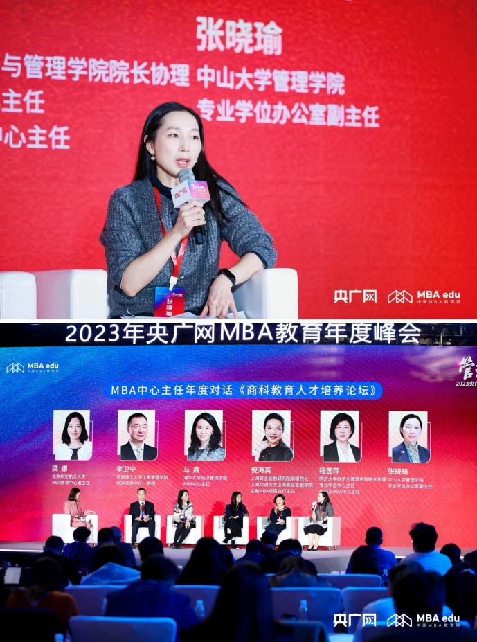 交流前沿思想、共话商科未来。2023年12月2日,由央广网主办,中国MBA教育网承办的“管理的力量暨2023央广网MBA年度大会”于北京成功举办。本次大会包含主旨演讲、商学院院长年度对话、MBA中心主任年度对话、2023年度商科教育致敬榜单发布环节。来自社会各界领导、优秀商科院校代表、优秀校友代表共襄盛会,围绕“管理的力量”主题,以多元视角和前瞻视野对中国商科教育进行深度观察,为推动新时代下商科教育发展注入新理念、新动力、新势能。中山大学管理学院专业学位办公室副主任张晓瑜应邀出席此次大会。