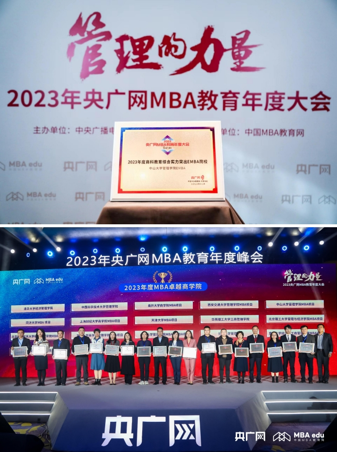 喜讯 | 中山大学管理学院荣获2023年度MBA卓越商学院