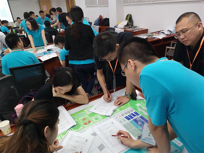 本次培训以小组竞赛的方式进行,每个小组最少5人。团队成员分别扮演企业的五个角色:总经理、市场营销总监、财务会计总监、生产总监以及供应总监。整体运营过程中要求大家心态开放,亲力亲为、团队协作、换位思考。